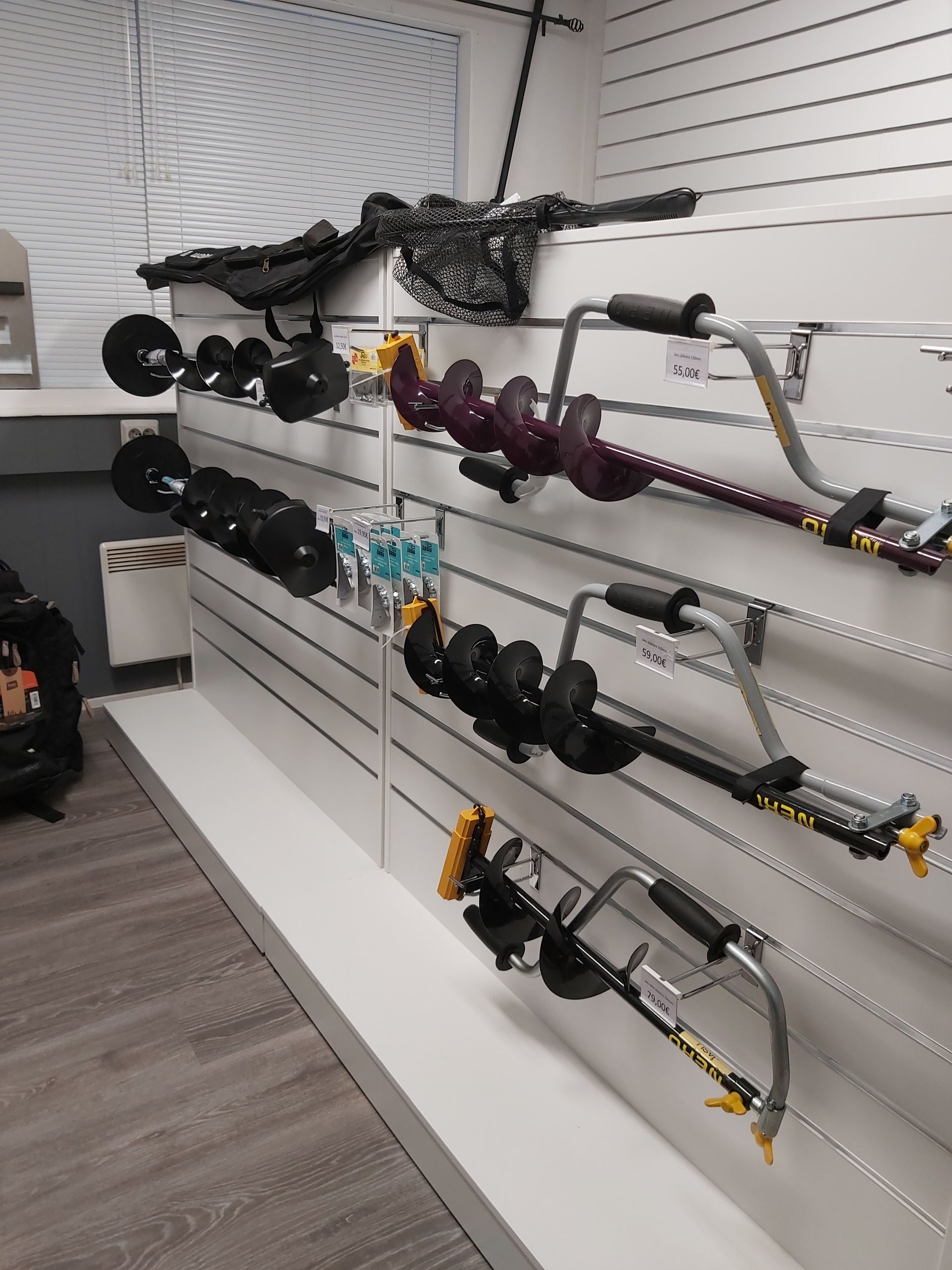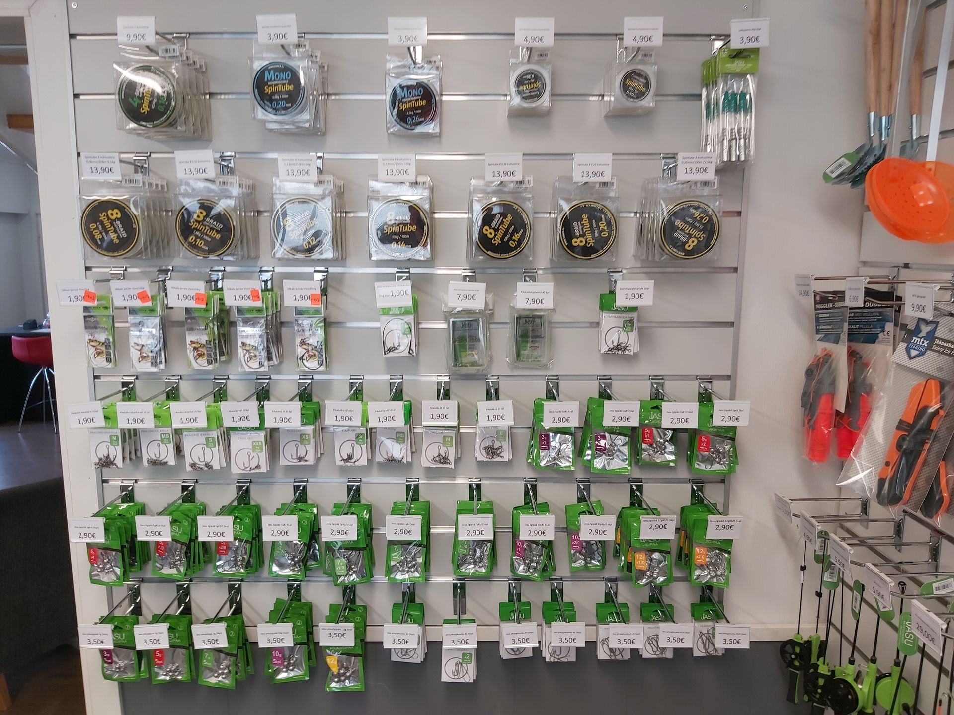 Voit hakea myymälästämme virvelit ja vavat, jigikalastusvälineet ja monenlaisia vieheitä. Lisäksi hyllyiltämme löytyy muun muassa pilkkitarvikkeita, siimoja, haaveja sekä erilaisia kalastustarvikkeita ja -työkaluja.